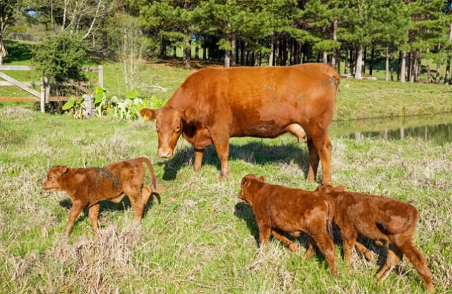 Uma vaca matriz da raça red angus pariu trigêmeos. O caso aconteceu na Fazenda Carazinho, em Campos Novos, Santa Catarina, no dia 5 de julho.