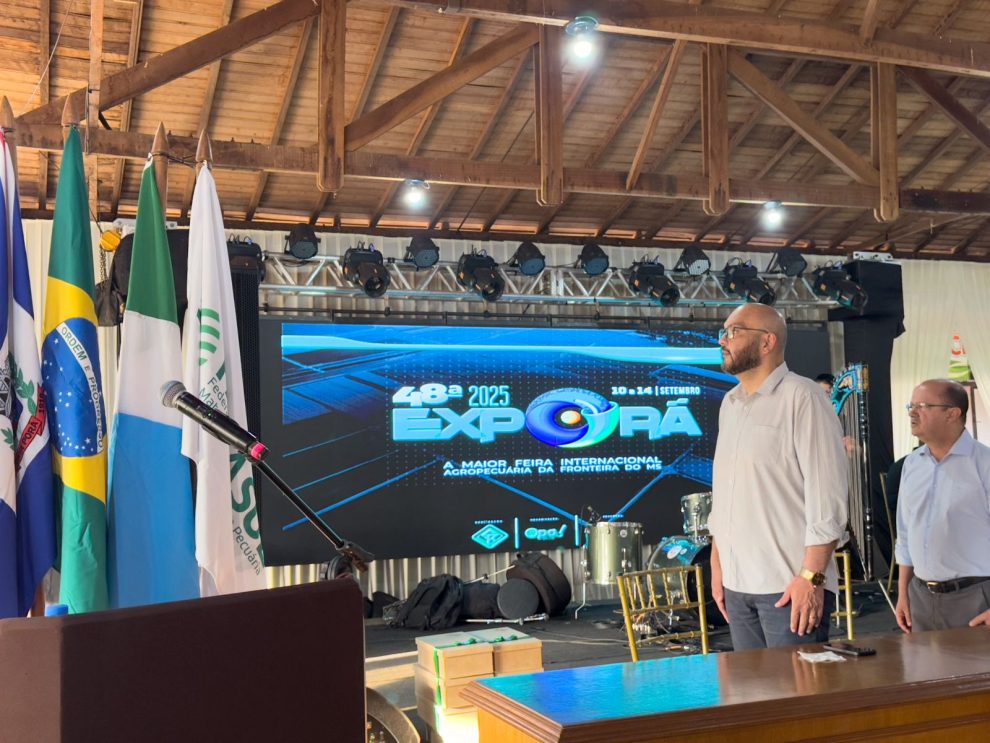 A 48ª edição da EXPORÃ foi oficialmente aberta em Ponta Porã com grande público e forte emoção. O presidente da Câmara Municipal, vereador Agnaldo Pereira Lima, participou da cerimônia e destacou em seu discurso a importância do evento para a economia local, lembrando que a feira já começou em alto nível com o show de Zé Neto & Cristiano e o grupo Menos É Mais.