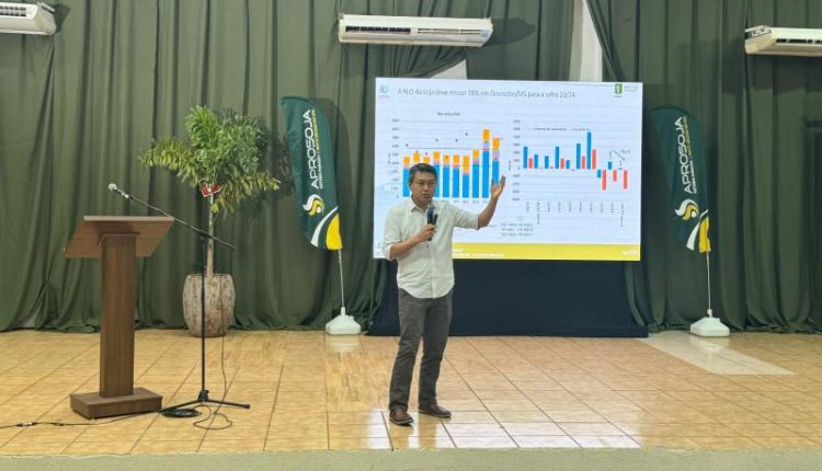 Osaki apresentou uma radiografia das safras de soja e milho no Estado. “É uma safra diferente! Bem diferente da safra 2022/2023 . Nós tivemos a frustração, uma reação dos preços, e você começa a perceber que a capacidade do produtor de sanar seus investimentos começa a entrar em risco. Em 2023, começamos a entrar abaixo da linha média das últimas sete safras e isso começa a apresentar um sinal de alerta por algumas razões, em função da rentabilidade que nós estávamos vivenciando desde 2019/20 para cá, os valores dos arrendamentos começaram a ficar mais caros, os valores das máquinas também começaram a ficar mais caros. De 2021 a gente começa a virar a chave, e essa região de vocês de Mato Grosso do Sul começa a ter uma variação climática mais presente no dia a dia do que no passado”.