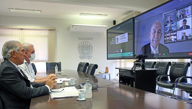 Por meio de videoconferência, o governador Reinaldo Azambuja participou nesta segunda-feira (10) de uma audiência da Comissão Temporária da Covid-19 do Senado Federal e destacou a importância da compra de mais vacinas e também de insumos, incluindo o kit intubação.