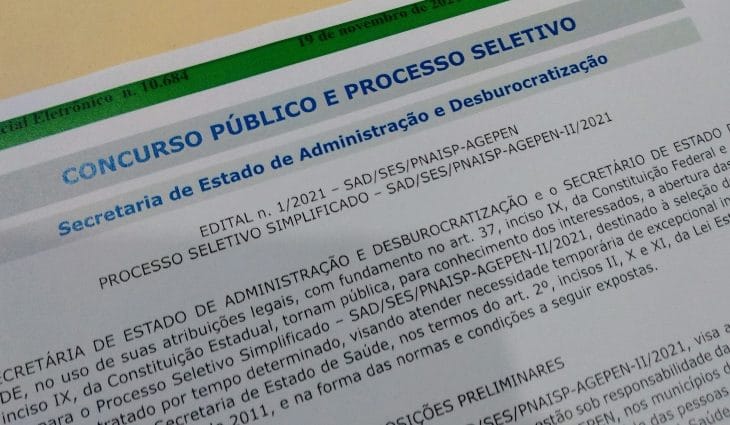 O Diário Oficial do Estado traz na edição desta sexta-feira (19), a abertura de Processo Seletivo Simplificado da Secretaria de Saúde – SAD/SES/PNAISP-AGEPEN-II/2021, destinado à seleção de pessoal por tempo determinado. A seleção visa a contratação de profissionais da saúde para atuação direta nos estabelecimentos penais que estão sob a responsabilidade da Agepen (Agência Estadual de Administração do Sistema Penitenciário de Mato Grosso do Sul).