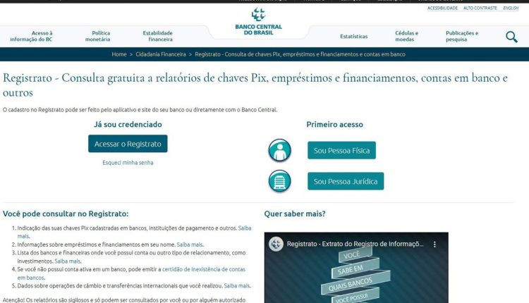 Por meio do Registrato, o cidadão pode consultar informações gratuitas sobre dívidas com bancos e órgãos públicos, cheques devolvidos, contas, chaves Pix e operações de câmbio. O sistema permite, por exemplo, verificar se o CPF foi usado por terceiros.