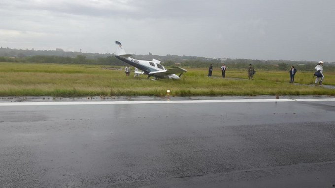 Momento de tensão e susto foi registrado nesta quarta-feira (1º) no Aeroporto Internacional Silvio Pettirossi, em Luque, Departamento Central, no Paraguai, depois que um avião de pequeno porte saiu da pista molhada e concluiu o pouso na grama. Os três ocupantes saíram ilesos.