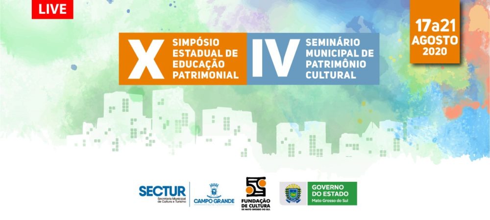A Fundação de Cultura de Mato Grosso do Sul (FCMS), em parceria com a Sectur, realiza de 17 a 21 de agosto o “X Simpósio Estadual de Educação Patrimonial e IV Seminário Municipal de Patrimônio Cultural”. O evento este ano será realizado online, com lives das palestras transmitidas pelas redes sociais da Fundação de Cultura e da Sectur, devido aos cuidados de isolamento necessários para evitar o contágio do Covid-19.