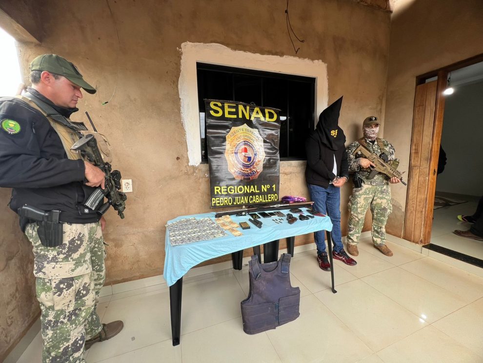 Além disso, os agentes também apreenderam dois carregadores, 49 cartuchos calibre 38, um colete à prova de balas, três celulares US$ 4.500 dólares e mais 250 reais. O procurador Celso Morales, que acompanha o caso, ordenou o encaminhamento do detento para a Base Regional da Senad em Pedro Juan Caballero.