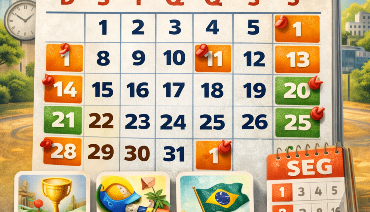 Calendário de feriados e pontos facultativos nacionais – 2026 (com dia da semana)
