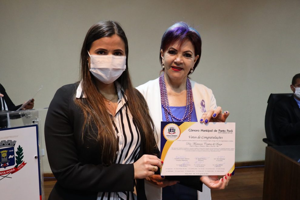 Após seu pronunciamento, a delegada recebeu um certificado de Votos de Congratulações, proposto pela vereadora Lourdes Monteiro, como reconhecimento “pelo importante trabalho no atendimento e proteção às mulheres de Ponta Porã e da Fronteira, com total interação com os programas municipais, estaduais e nacionais, fazendo do seu trabalho uma referência na luta contra a violência às mulheres”.