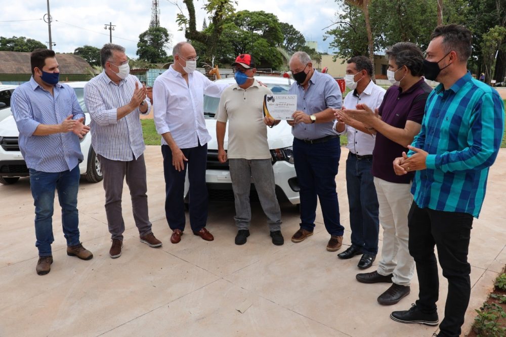 O prefeito de Ponta Porã, Hélio Peluffo (PSDB) participou nesta quinta-feira (17), da entrega dos três carros e duas motos 0 km aos ganhadores do IPTU premiado 2020.