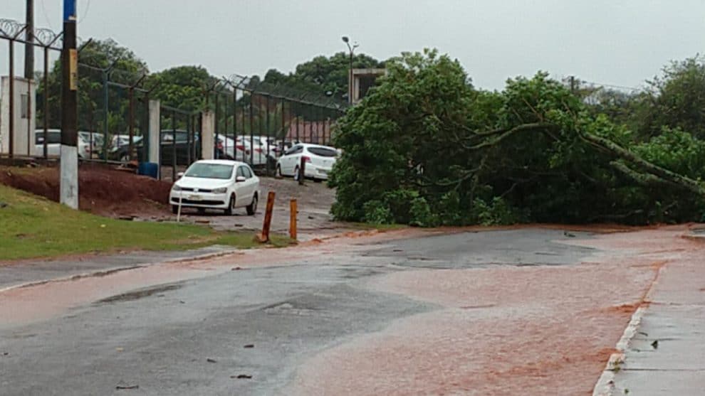 A Defesa Civil de Ponta Porã iniciou na tarde desta sexta-feira (15), um mapeamento dos estragos provocados pelo temporal que atingiu a cidade. Árvores caíram em vários pontos, semáforos praticamente arrancados e até o ginásio Porabask ficou danificado.