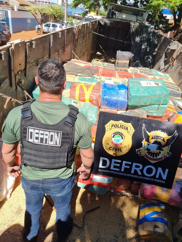 Nesta quarta-feira (12), a Defron (Delegacia de Repressão aos Crimes de Fronteira) prendeu Rodrigo Silva da Rosa, de 44 anos, com mais de 5 toneladas de maconha, escondidas em uma carga de soja, na cidade de Ponta Porã.