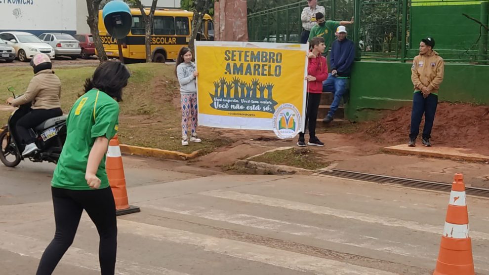 Diretores, professores e alunos da Escola Estadual Ramiro Noronha, em Ponta Porã, realizaram uma importante ação na última quinta-feira. O mês de setembro é marcado no mundo por campanhas denominadas “Setembro Amarelo”. A campanha mundial é idealizada pela OMS – Organização Mundial da Saúde – e em Ponta Porã foi lembrada pela Escola Noronha.