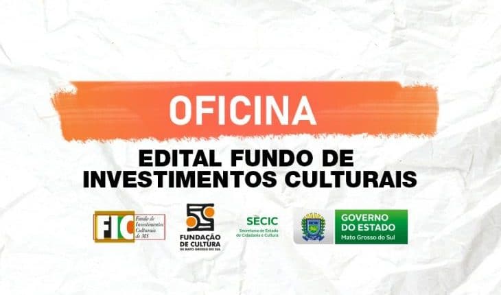 A Fundação de Cultura de Mato Grosso do Sul (FCMS) oferece no dia 20 de janeiro de 2021, quinta-feira, às 15 horas, uma oficina para esclarecer dúvidas sobre o Edital do Fundo de Investimentos Culturais (FIC) 2021. Serão oferecidas 20 vagas presenciais, no auditório do Museu da Imagem e do Som, e 100 vagas online.