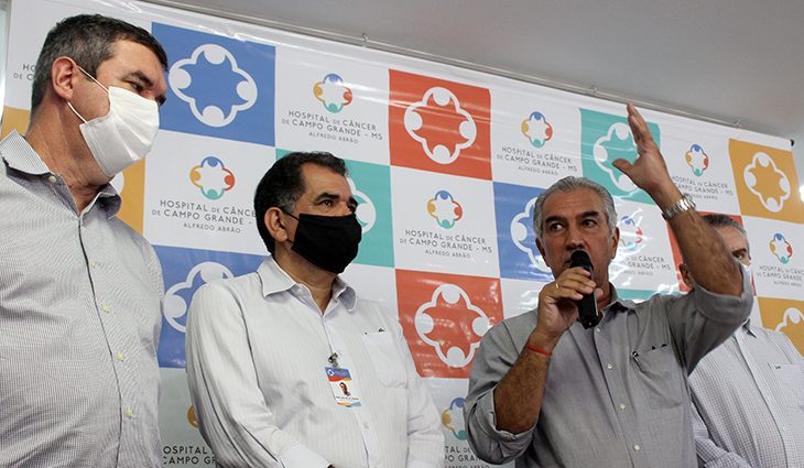 Com foco no apoio à saúde pública, o governador formalizou um termo de compromisso com o Hospital de Câncer de Campo Grande – Alfredo Abrão (HCAA), no valor de R$ 16 milhões, para a retomada e conclusão de ampliação da unidade, que no novo prédio vai contar com sete andares, 20 leitos de UTI oncológicos, oito salas de cirurgia, 90 novos leitos de internação adulta.