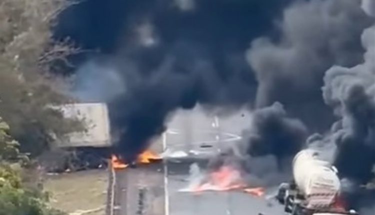 Grave acidente seguido de incêndio envolve carretas na BR-163 no Anhandui