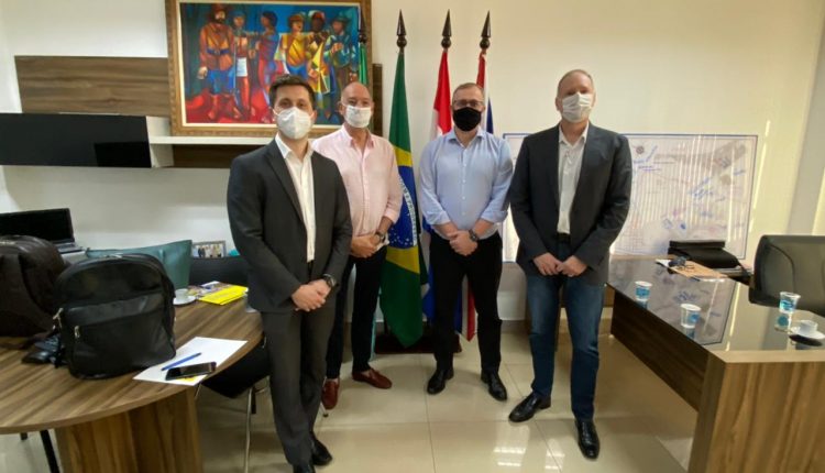 O prefeito de Ponta Porã, Hélio Peluffo recebeu ontem (7), em seu gabinete no Centro Internacional de Convenções Miguel Gomez, os superintendentes Sandro Jacobsen Grando, Banco Brasil e Marcel Figueredo, da Superintendência de Varejo para o Mato Grosso do Sul.