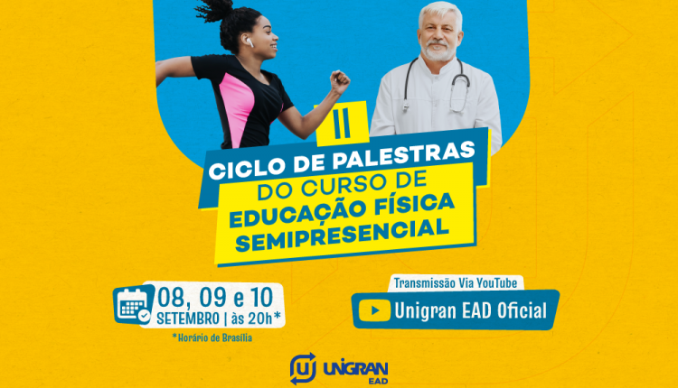 O II Ciclo de Palestras de Educação Física da Unigran EAD já está com a programação definida e inscrições abertas para acadêmicos, pesquisadores, professores e profissionais da área da Educação Física. O evento científico estudantil, também conhecido como Semana Acadêmica, aderiu ao formato digital e pelo segundo ano consecutivo será realizado 100% on-line.