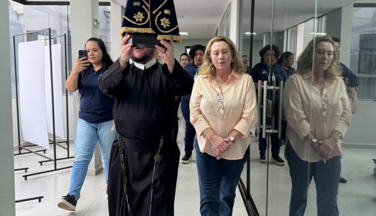 O Padre e a imagem levaram a mensagem e a bênção até o gabinete do Prefeito Eduardo Campos, que foi ungido e abençoado. A iniciativa faz parte das comemorações do dia 12/10.