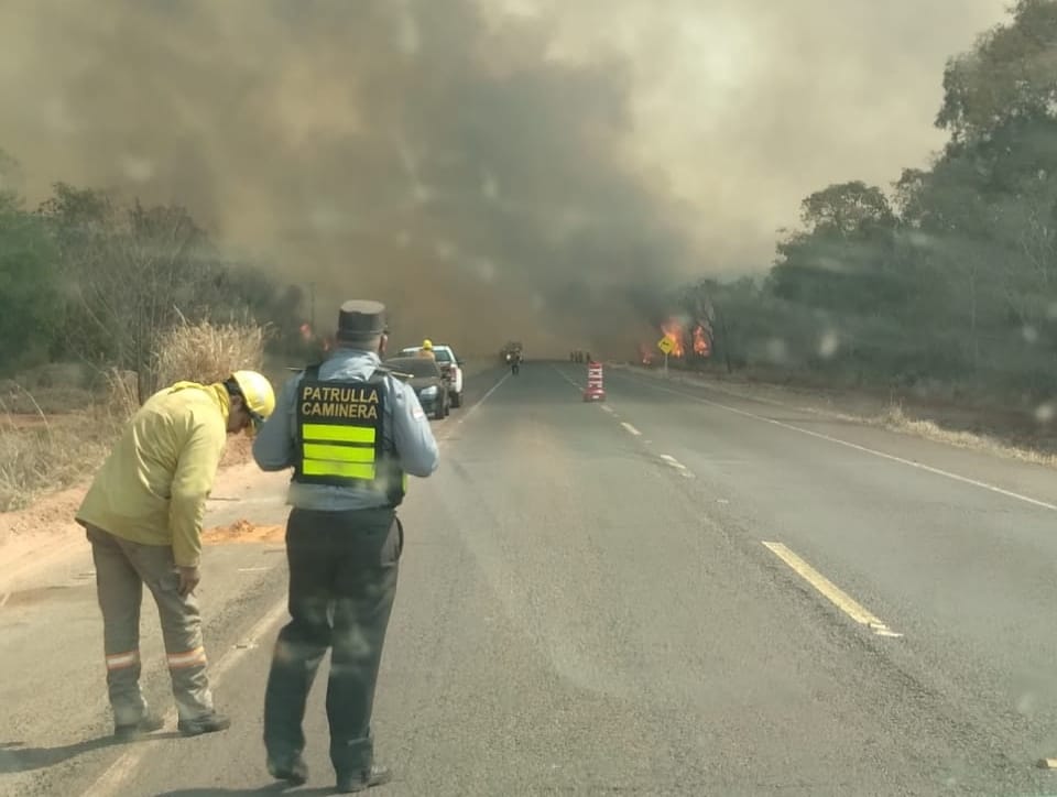 Devido as chamas e a fumaça o tráfego chegou a ser interrompido na PY 05 nesta sexta-feira.(Foto:Divulgação)