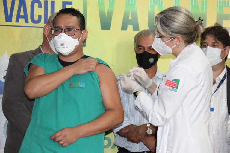 “É uma alegria ter a Domingas, que representa a aldeia Tereré, a dona Maria que, segunda-feira fará 83 anos, e o doutor Márcio, pessoa querida, que trabalha na linha de frente junto aos colegas do HRMS. Nosso pedido é que a gente despolitize a vacina. Não importa de onde venha, desde que salve vidas. Afinal, são mais de 2,6 mil famílias que perderam entes queridos”, salientou o governador.