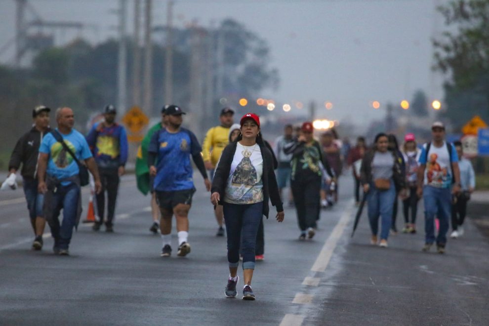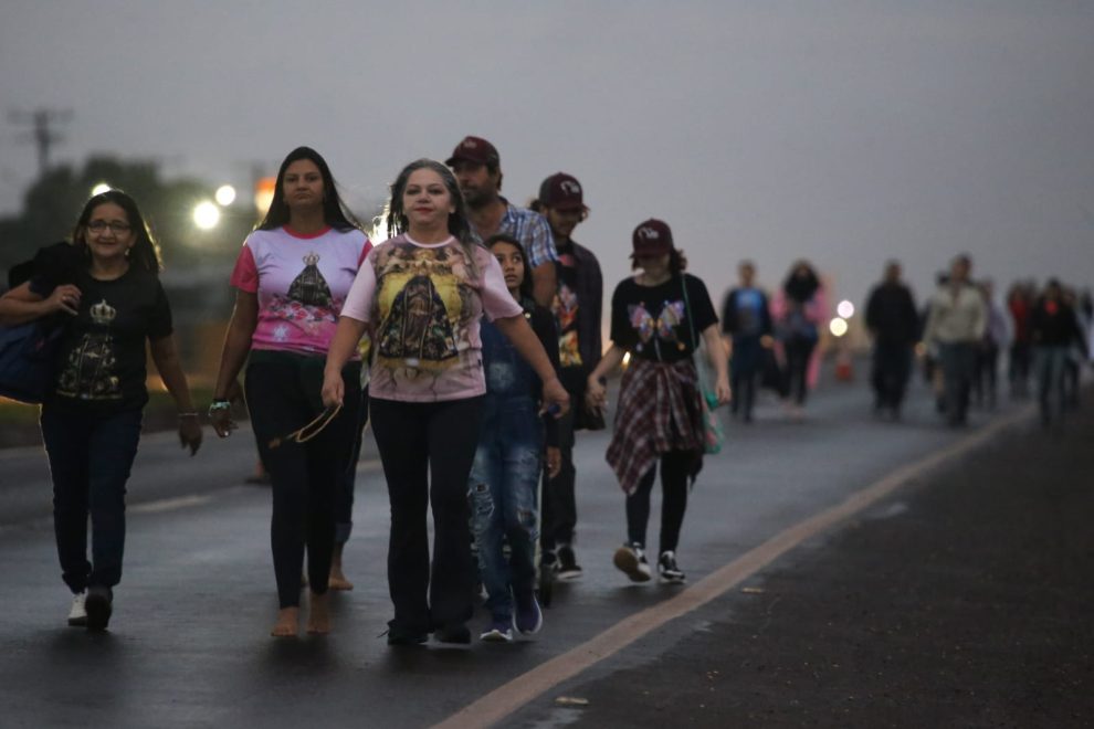 Nem mesmo a forte chuva que caiu desde a madrugada foi capaz atrapalhar a caminhada dos fiéis de Dourados e até o Santuário de Nossa Senhora Aparecida, que fica no distrito de Vila São Pedro. Alguns tiveram que acordar de madrugada e caminharam de 30 quilômetros pela BR-163.