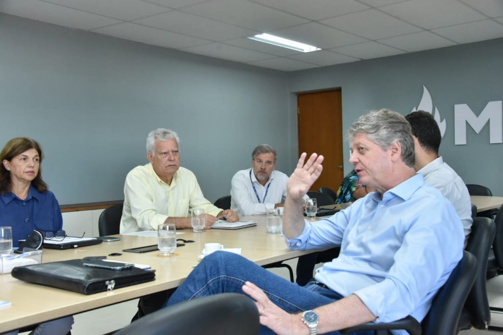 Investimentos de R$ 35 milhões, construção de 34 quilômetros de redes de ramais de distribuição de gás natural e mais de 3.500 ligações para os clientes. Estas são algumas das ações previstas pela MSGÁS (Companhia de Gás de Mato Grosso do Sul) para o Estado no Plano de Investimentos 2023-2028. O documento foi apresentado nesta terça-feira (11) ao secretário de Estado de Meio Ambiente, Desenvolvimento, Ciência, Tecnologia e Inovação (Semadesc), Jaime Verruck , e ao secretário-executivo Bruno Bastos em reunião com o presidente da empresa, Rui Pires dos Santos, o diretor técnico comercial da MSGÁS, Fabrício Marti, a diretora financeira, Bernadete Rangel, e os gerentes Regiane Schio e Jason Willians. Nesta gestão a MSGÁS está vinculada a Semadesc.