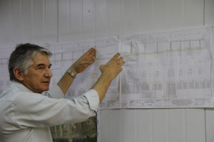 O engenheiro Sebastião Ronquim explica que o vão central terá ainda uma estrutura (blocos) de apoio de 150 metros de cada lado do rio, com previsão de iniciar a montagem do “tabuleiro” (parte estaiada) com lançamento de vigas e aduelas e concretagem da lage, em meados do próximo ano. “Nessa fase de pico da obra estaremos trabalhando com 600 funcionários”, informa Ronquim, um paulista de 64 anos da Paulitec Construções.