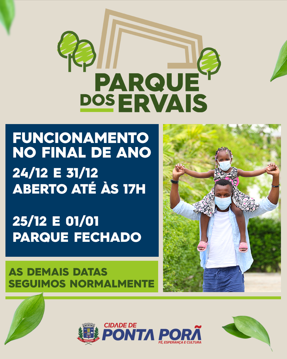Segundo publicação na página oficial da Prefeitura, no Facebook, o parque estará fechado aos pontaporanenses nos dias 25 de dezembro e 1 de janeiro.