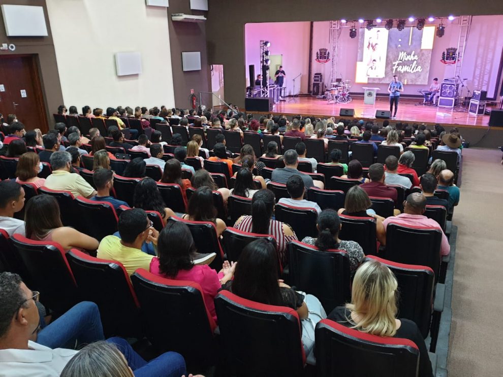 O prefeito Hélio Peluffo, ao lado da primeira-dama Vânia Peluffo, participou da palestra noturna do pastor Junior Rostirola, A secretária de Assistência Social, Vera Oliveira, além de promover o evento, recepcionou público e autoridade presentes no Centro de Convenções.