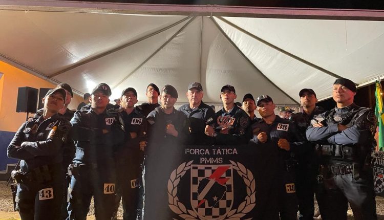 Na tarde de segunda-feira (15), policiais militares participaram da Cerimônia de Formatura do 7º Caft (Curso de Aperfeiçoamento em Força Tática) da Polícia Militar de Mato Grosso do Sul, em Dourados.