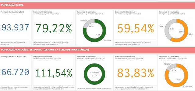 Dados do ‘vacinômetro’ da Secretaria Estadual de Saúde mostra que até ontem (26), Ponta Porã já tinha vacinado com a D1 (Dose 1) ou DU (Dose Única), da Janssen, 79,22% da população. O número de habitantes geral da cidade é de 93.937.