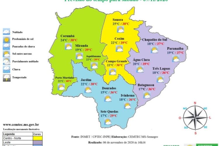 Uma massa de ar seco segue influenciando no tempo em Mato Grosso do Sul. Neste sábado (7) o tempo continua firme com poucas nuvens no céu, temperaturas elevadas e sem expectativa de chuva.