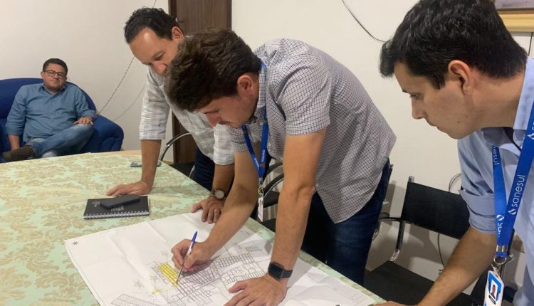 O diretor-presidente da Sanesul Walter Carneiro Jr. esteve pessoalmente com o prefeito Thalles Henrique Tomazelli explicando todo o cronograma de obras e o valor do investimento que será feito no saneamento.