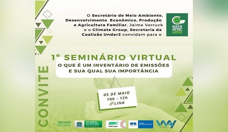 O secretário Jaime Verruck, da Semagro (Secretaria de Meio Ambiente, Desenvolvimento Econômico, Produção e Agricultura Familiar) participa na quinta-feira (5), do 1º Seminário Virtual: “O que é um Inventário de Emissões e sua qual sua importância”. O evento será realizado das 10h à 12h, é organizado pelo Climate Group, Secretaria da Coalizão Under2, em parceria com a Semagro e integra o conjunto de ações do Governo do Estado para que Mato Grosso do Sul seja reconhecido como um território Carbono Neutro até 2030, compromisso apresentado e assumido pela administração estadual em novembro de 2021 na COP 26.
