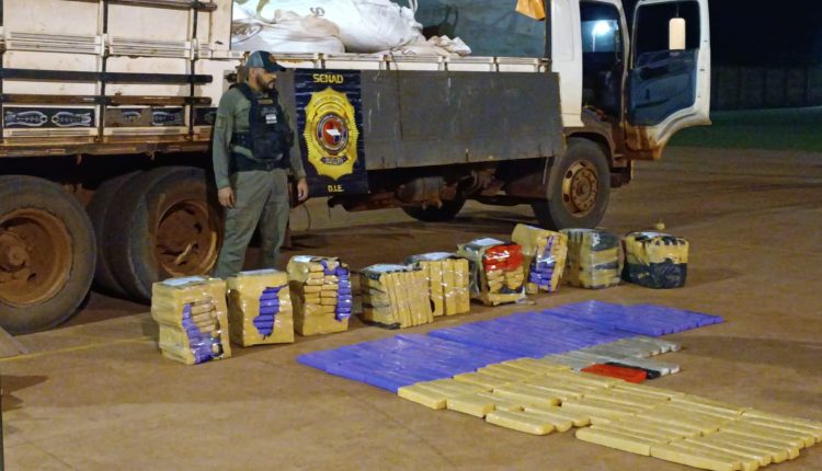 Agentes da Senad (Secretaria Nacional Antidrogas), da Diretoria de Inteligência Estratégica, em operação na noite de quinta-feira (6/7), na área da Colônia San Luis, no Paraguai, apreenderam maconha escondida em um caminhão carregado com soja.