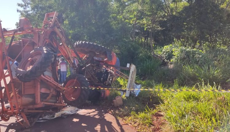 O instrumento agrícola foi atingido por trás por um caminho de uma transportadora que estava carregado com medicamentos que seriam entregues em Dourados. Com o impacto o trator e o tanque ficaram destruídos e o caminhão tombou.