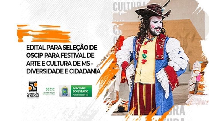 A Fundação de Cultura de Mato Grosso do Sul (FCMS) publicou no Diário Oficial do Estado (DOE) o Chamamento Público por meio de verba proveniente do pacote de apoio “Retomada MS”, do Governo Estadual, para habilitação de Organizações da Sociedade Civil de Interesse Público (OSCIP’s) para seleção de projeto para realizar parte do Festival de Arte e Cultura de MS – Diversidade e Cidadania.