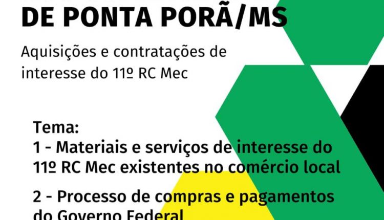 O evento será realizado do auditório do quartel, dia 23 de março (quarta-feira), a partir das 19h30min, quando os oficiais do Setor de Compras do “Regimento Marechal Dutra” farão uma “Exposição Informacional aos Comerciantes de Ponta Porã”. No contexto figuram materiais e serviços de interesse do 11º RCMec existentes no comércio local e os processos de compras e pagamentos do Governo Federal.