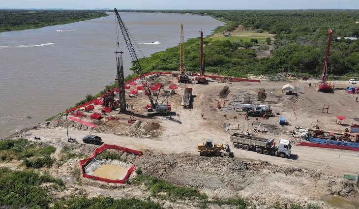 A ponte sobre o Rio Paraguai é fundamental para a viabilização da Rota Bioceânica. A obra é financiada pela usina Itaipu Binacional no valor de 616,836 milhões de guaraníes (cerca de US$ 90 milhões) e terá uma extensão total de aproximadamente 1.293 metros. No lado brasileiro, estão sendo feitos os preparativos para a execução das estacas. A central dosadora de concreto já está montada no lado brasileiro, juntamente com os armazéns de apoio. A travessia de todo esse material para a margem brasileira do rio foi feita sobre jangadas.