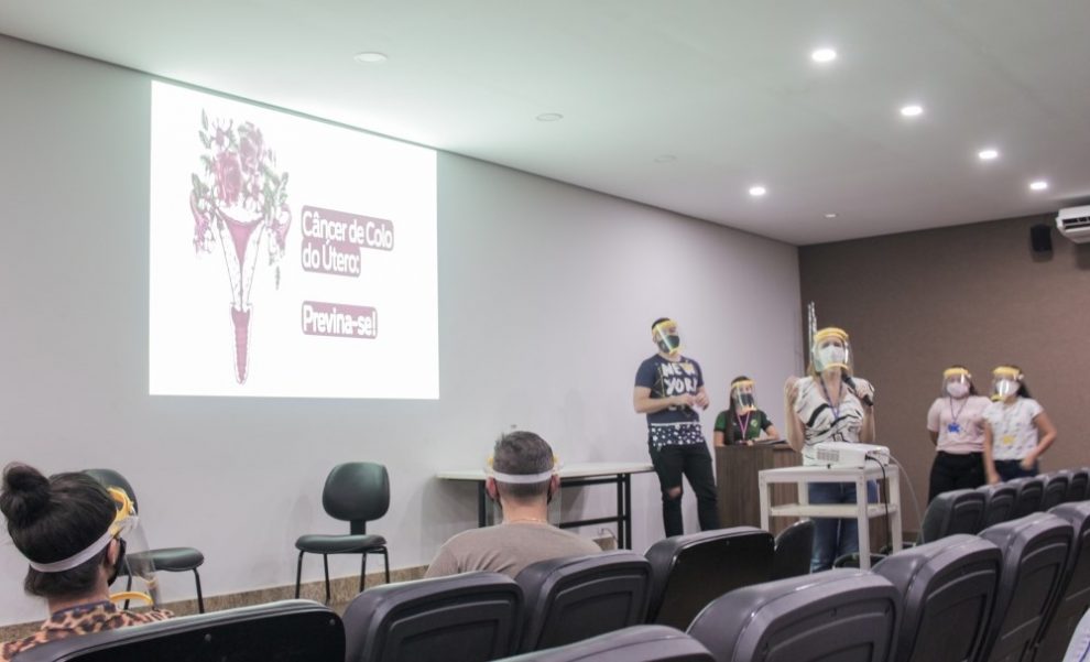 A primeira palestra foi promovida no dia 12 de março e, por ser considerado o Mês da Mulher, o tema foi “Câncer do Colo do Útero e Mama”. O assunto foi desenvolvido e apresentado pelos acadêmicos da disciplina de Saúde Mental do 9º semestre do curso de Enfermagem, orientados pela professora Selma Thais Storti Ricci.