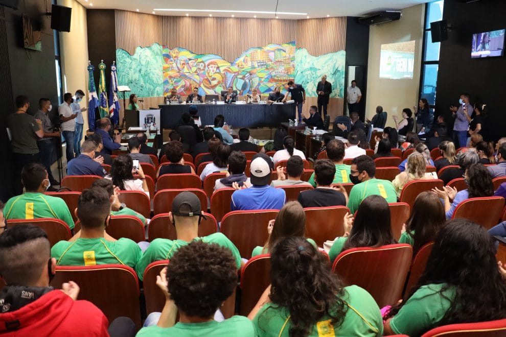 O Plenário Isaac Borges Capillé ficou completamente lotado durante a realização da sessão ordinária de 30 de novembro, na Câmara Municipal de Ponta Porã. Estudantes, representantes dos profissionais da Educação, lideranças comunitárias, religiosas e autoridades de Pedro Juan Caballero, prestigiaram a sessão marcada pela utilização da Tribuna livre e concessão de honrarias.