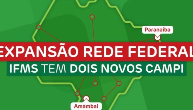 Em Mato Grosso do Sul, serão criados dois novos campi do Instituto Federal (IFMS), nos municípios de Amambai e Paranaíba. O investimento será de R$ 25 milhões em cada município, sendo R$ 15 milhões para construção dos campi e R$ 10 milhões destinados a mobiliário e equipamentos.