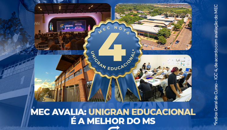 “Nós temos muito que comemorar”, comentou a Reitora da Unigran Educacional, Rosa Maria D’Amato De Déa. O Centro Universitário ficou no topo do ranking, entre as 44 universidades do MS avaliadas pelo MEC, com Índice Geral de Curso – IGC 4. O indicador reúne itens indispensáveis para o MEC, como a média dos Conceitos de Cursos dos três anos anteriores. Sendo assim, a nota carimba a excelência de ensino da Unigran por meio de sua infraestrutura, corpo docente de mestres e doutores e um projeto pedagógico completo.