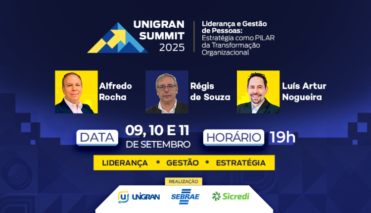A terceira edição do Unigran Summit já tem data marcada: de 9 a 11 de setembro de 2025. O evento convida acadêmicos e profissionais das áreas de Gestão a refletirem sobre o papel da liderança e da gestão de pessoas como pilares estratégicos da transformação organizacional.