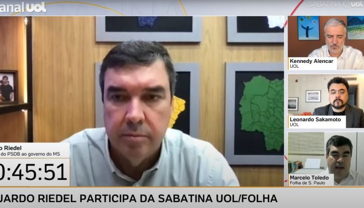 Nesta quinta-feira (20) pela manhã o candidato ao Governo do Estado, Eduardo Riedel (PSDB), foi sabatinado pelos jornalistas Kennedy Alencar, Leonardo Sakamoto e Marcelo Toledo. A entrevista ao vivo foi organizada pela Folha de São Paulo e pelo site UOL.