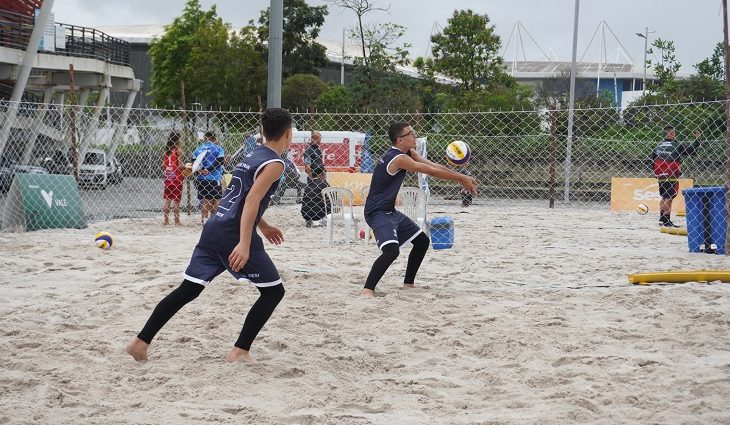 A chuva fina ininterrupta e o vento frio que tomaram conta da Cidade Maravilhosa, no feriado de Finados, não desanimaram as campo-grandenses Ana Beatriz e Beatriz. As meninas, que vestem o uniforme da Escola Sesi, venceram as mineiras do Colégio Educare Betim, por 2 sets a 0 (21×14 e 21×16), em arena montada no Parque Olímpico da Barra da Tijuca. Também no vôlei de praia, Felipe Costa e João Victor Maciel (Escola Sesi) foram derrotados, por 2 sets a 0 (21×8 e 21×8), para a dupla sergipana do Instituto Dom Fernando Gomes, mas ainda têm chances de classificação.