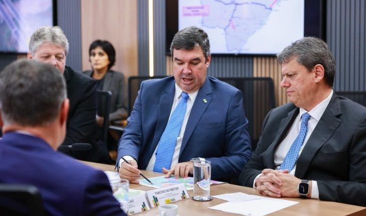 Durante reunião nessa quarta-feira (3/4), em Brasília (DF), com o ministro dos Transportes, Renan Filho, os governadores Eduardo Riedel, de Mato Grosso do Sul e Tarcísio Freitas, de São Paulo, discutiram o projeto de relicitação da ferrovia Malha Oeste. A linha que será entregue mais uma vez à iniciativa privada, passa pelos dois Estados somando mais de 1.600 quilômetros entre as cidades de Corumbá e Mairinque (SP). O secretário Jaime Verruck (Meio Ambiente, Desenvolvimento, Ciência, Tecnologia e Inovação) e a procuradora-geral de Mato Grosso do Sul, Ana Carolina Ali Garcia, também participaram do encontro.