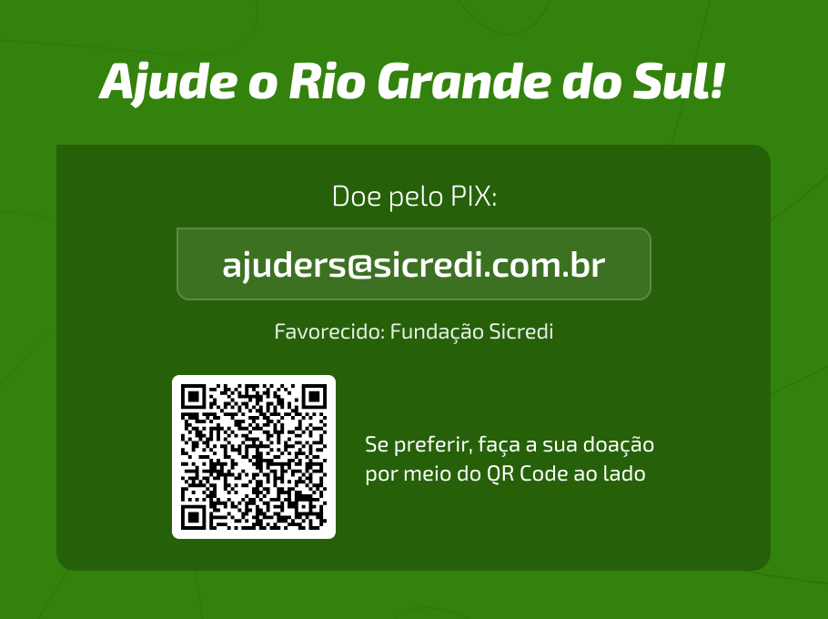 O Sicredi segue mobilizando os seus públicos, e continuará com a mesma dinâmica de igualar o valor recebidos via pix da Fundação Sicredi. A iniciativa reflete um dos pilares do cooperativismo que é a solidariedade, com a união de esforços para enfrentar os desafios. Os interessados em participar podem enviar suas doações, de qualquer valor, para a chave pix ajuders@sicredi.com.br, conferindo o nome favorecido como Fundação Sicredi.