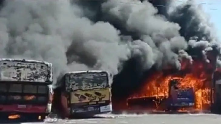 Um incêndio ocorrido nesta sexta-feira (10) em Capiatá, no Departamento Central, provocou a destruição de nove ônibus de transporte coletivo que pertencem à empresa San Lorenzo SACI, na linha 27, localizada no km 24 da Rodovia PY02.