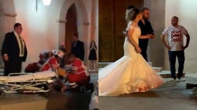 Imagens que circulam na internet mostram as tristes cenas daquilo que deveria ser um dia feliz. Convidados e espectadores que passavam pelo local capturaram a noiva a gritos com o vestido sujo de sangue, além do momento em que uma equipe de paramédicos tenta reanimar o homem recém-casado.
