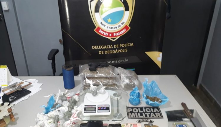 As polícias Civil e Militar prenderam por volta das 18h de ontem (15), na avenida Deodato Leonardo da Silva, centro de Deodápolis, Luiz Carlos Almeida, de 23 anos, Tainatã Ailton Gomes Santos, de 24, Maicon Escobar Mendes, de 25, e Fabiana Morel de Matos, de 18, foram presos acusados de tráfico de drogas.
